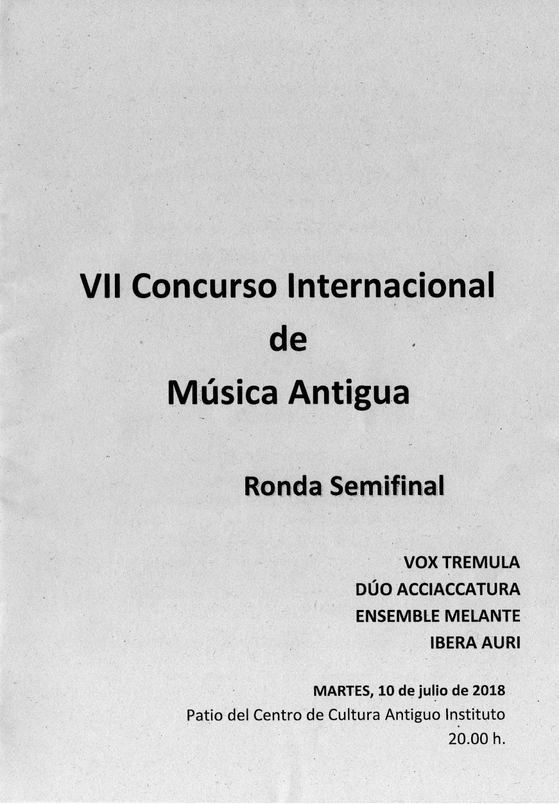 Martes 10 de julio, 20:00 horas. Patio del Centro de Cultura Antiguo Instituto, Gijón: VII Concurso Internacional de Música Antigua. Ronda Semifinal. Entrada libre hasta completar aforo.